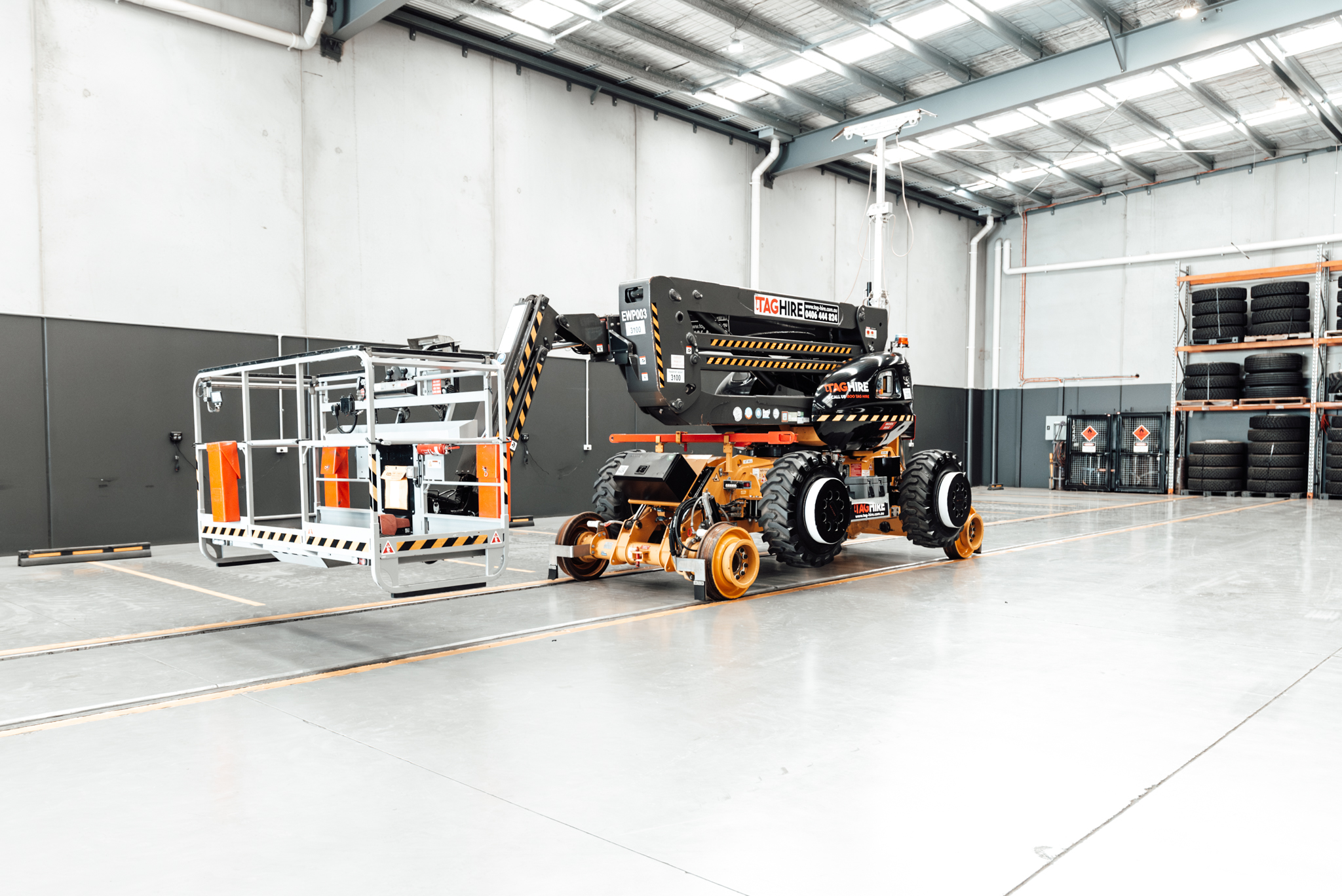 TAG’s Hi-Rail Elevated Work Platforms (EWPs) are designed to provide precise and reliable access for rail industry projects, seamlessly combining the mobility of rail vehicles with the elevated working heights of specialised platforms. These platforms are ideal for tasks like trackside maintenance, overhead infrastructure upgrades, and inspections, offering enhanced safety and efficiency.